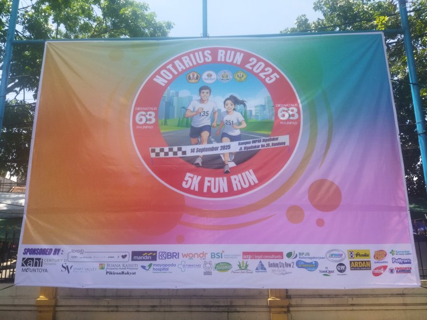 Bandung - Fakultas Hukum Universitas Padjadjaran (UNPAD) memperingati Dies Natalis ke-68 dengan cara berbeda pada tahun ini. Bersama Program Studi Magister Kenotariatan, Ikatan Alumni Notariat UNPAD (IKANO UNPAD), dan Ikatan Mahasiswa Notariat UNPAD (IMNO UNPAD), digelar ajang olahraga Notarius Run 5K 2025 pada Minggu (14/9/2025) di Kampus UNPAD Dipatiukur, Bandung. Acara berlangsung sejak pukul 06.00 WIB dan berhasil menarik ribuan peserta dari berbagai kalangan, mulai dari mahasiswa, alumni, hingga masyarakat umum.