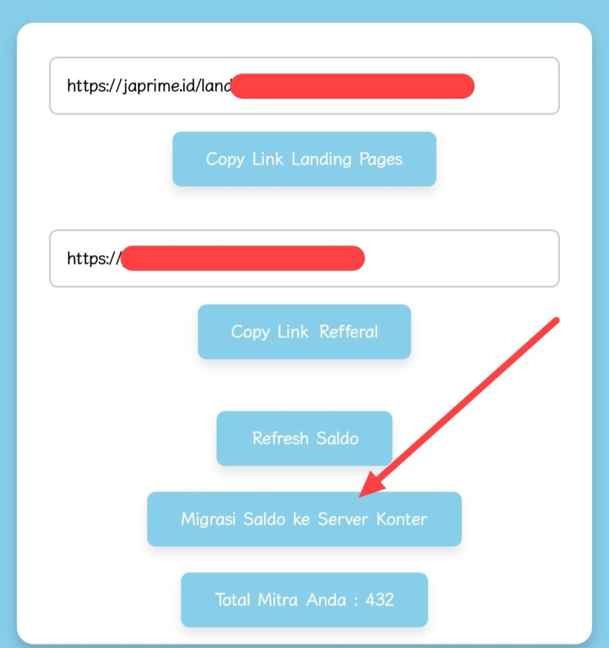 4️⃣. Di bagian bawah silahkan klik "Migrasi Saldo Ke Server Konter"